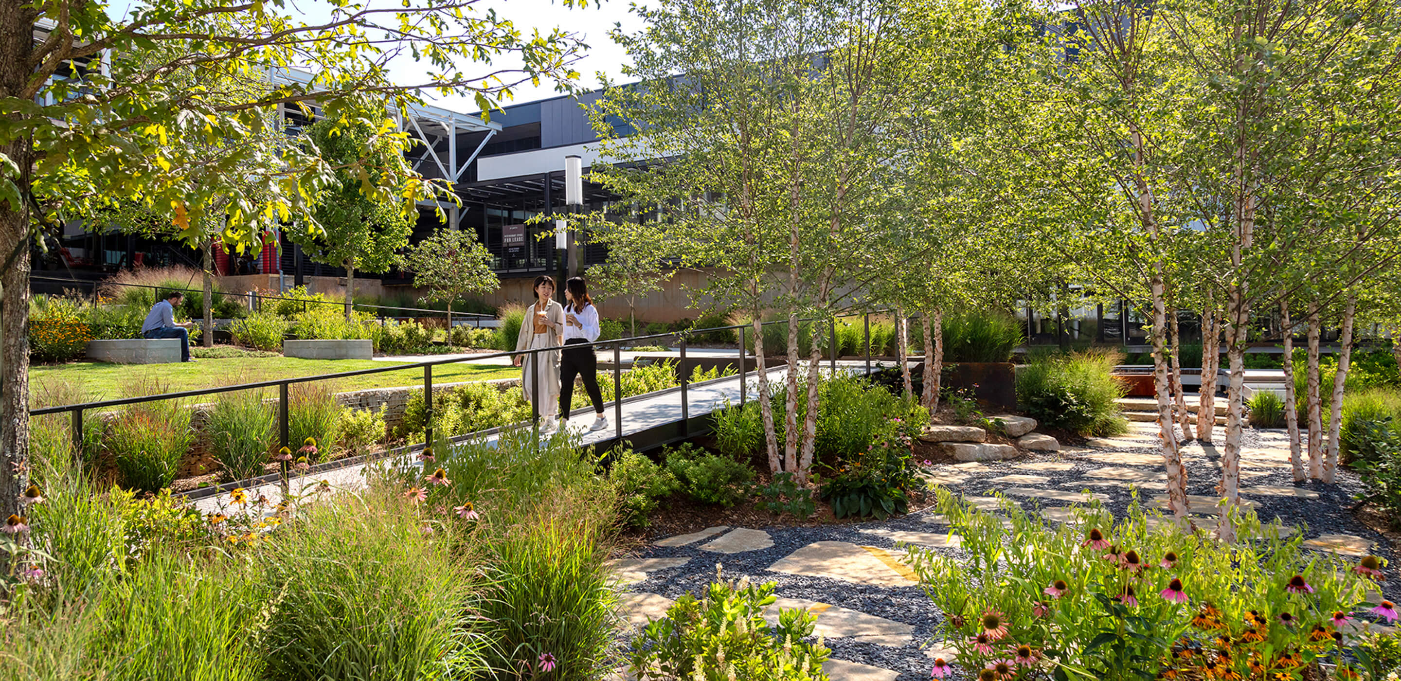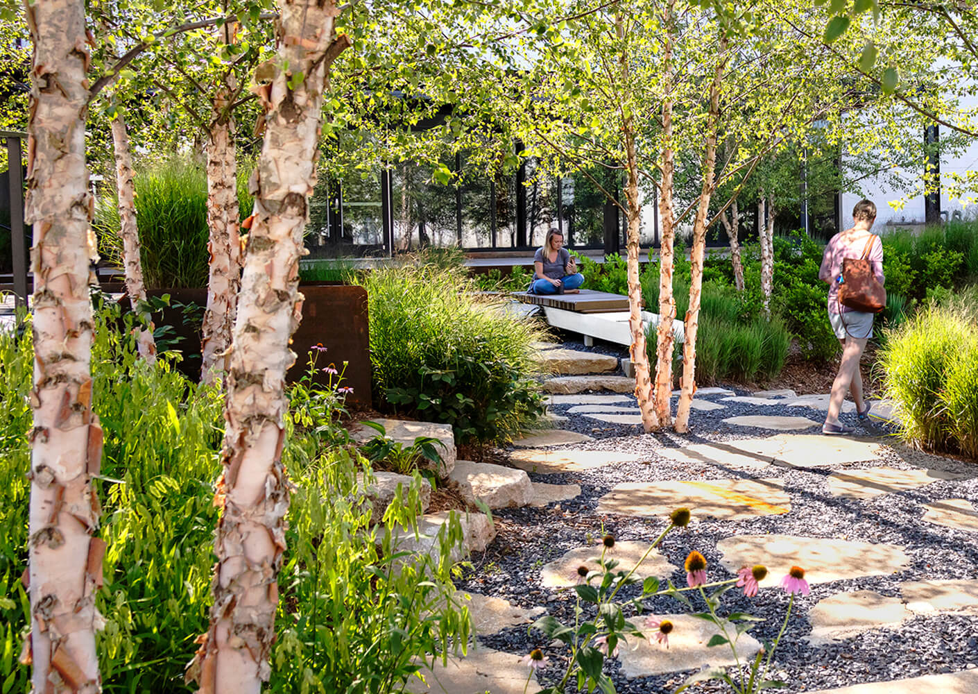 Through the interplay of linear hardscape and loose, organic softscape, we restored a community treasure and gave it back to the people and the land.