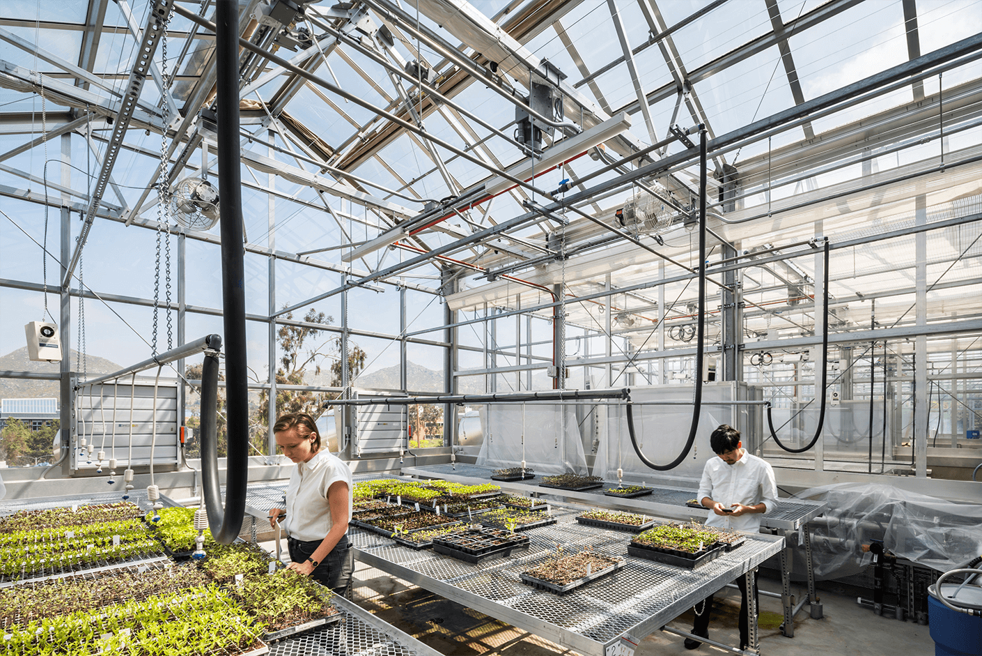 A state-of-the-art two-story, 30,000-square-foot greenhouse research facility at UC Riverside's College of Natural and Agricultural Sciences
