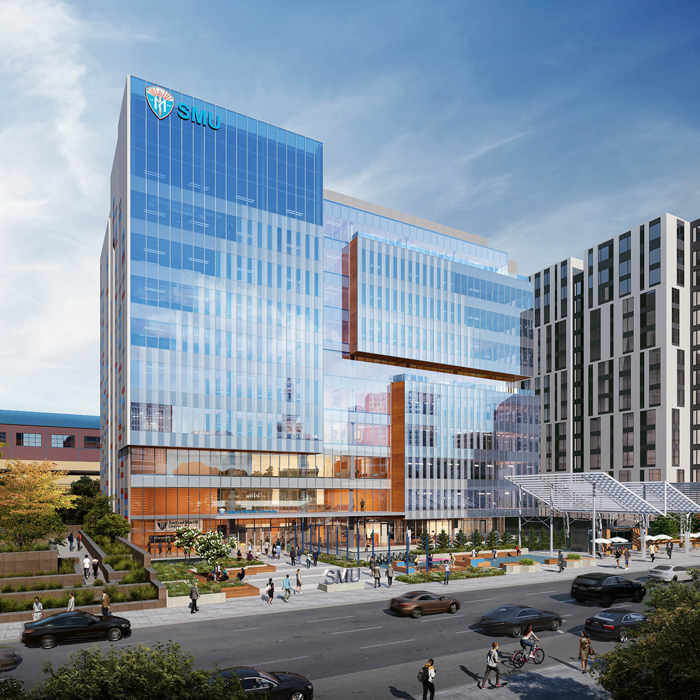A new health sciences education tower in Downtown Oakland. This 225,000 sf, 10-story tower is a “mixed building,” with spaces to learn, focus, collaborate, and socialize. A variety of program uses are held together by the social, collaborative spaces that are also expressed on the building exterior. The building mass is split into volumes with roof terraces at Levels 2, 6, and 10, providing areas of respite from intensive hands on learning. The design intent is to invite collaboration and promote healthy living, embodying the ethos of the University.