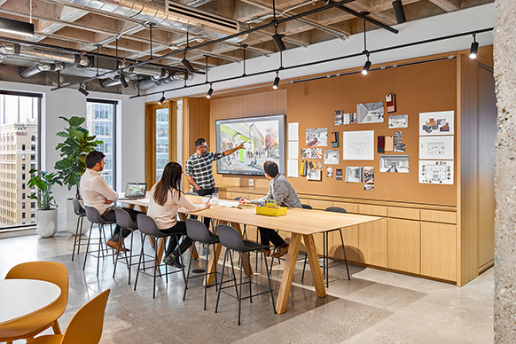 Located in the heart of one of the world’s most culturally diverse cities, we’re an interdisciplinary studio of forward-thinking individuals. We believe in the power of design to transform people’s lives by transforming the places in which they live, learn, work, and play. We take pride in shaping communities at every scale. Our studio reflects who we are: diverse, creative, and curious. It’s an active “laboratory” that fuels experimentation and research, a forum for discussions with our clients and community, and a gallery showcasing our work and our people.