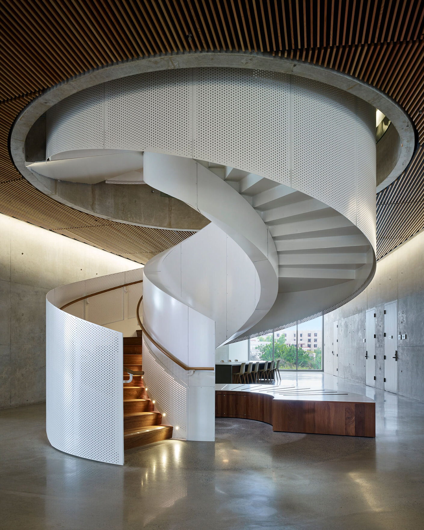 Boardroom and demo studios serve as startup creation space, and student project spaces support experiential learning for passersby. The learning and innovation studio is a 275-seat auditorium that will act as a lab to create the learning and discovery modes of the future. The building will also support a new form of hybrid distance learning that is a rich and dynamic interaction between teachers and students.
