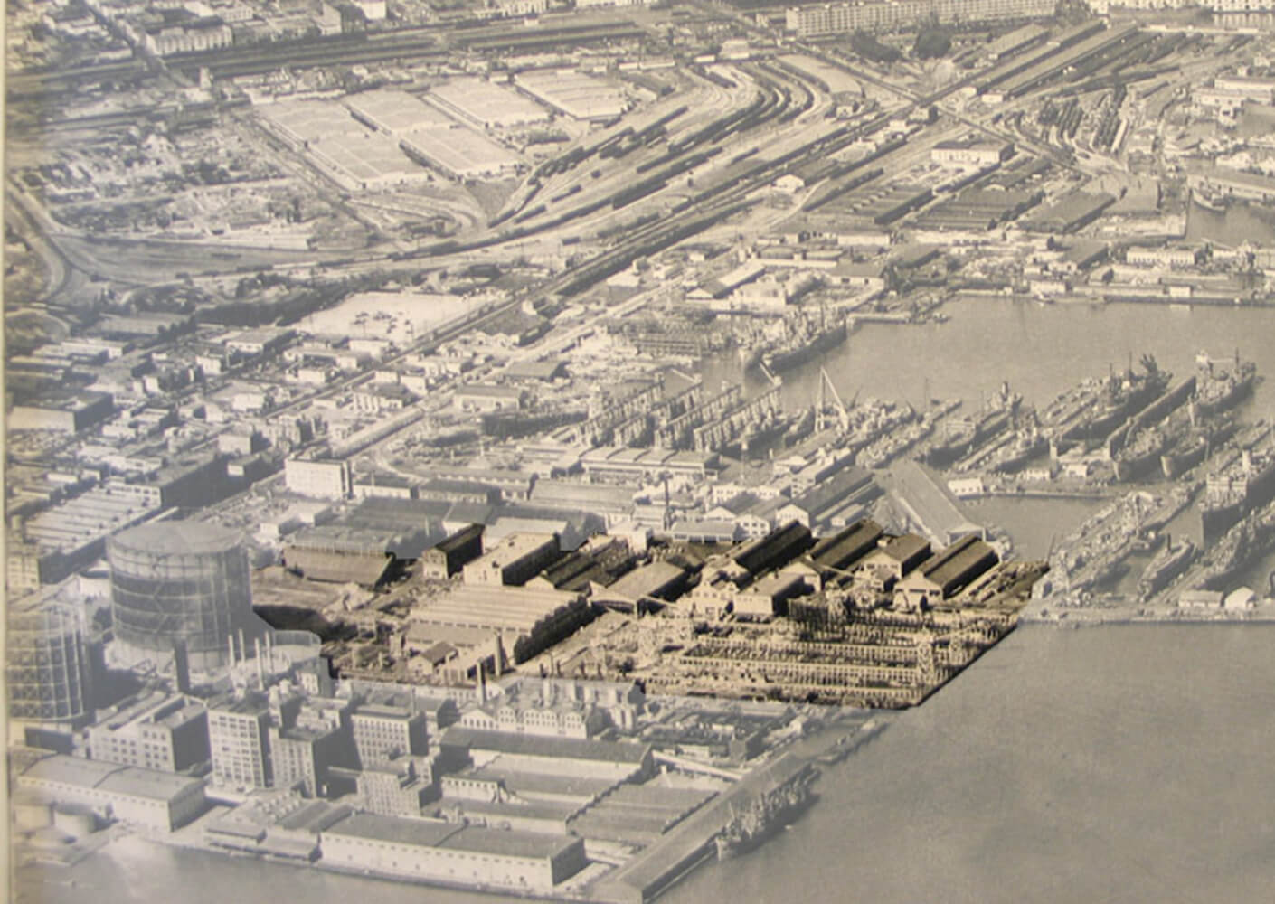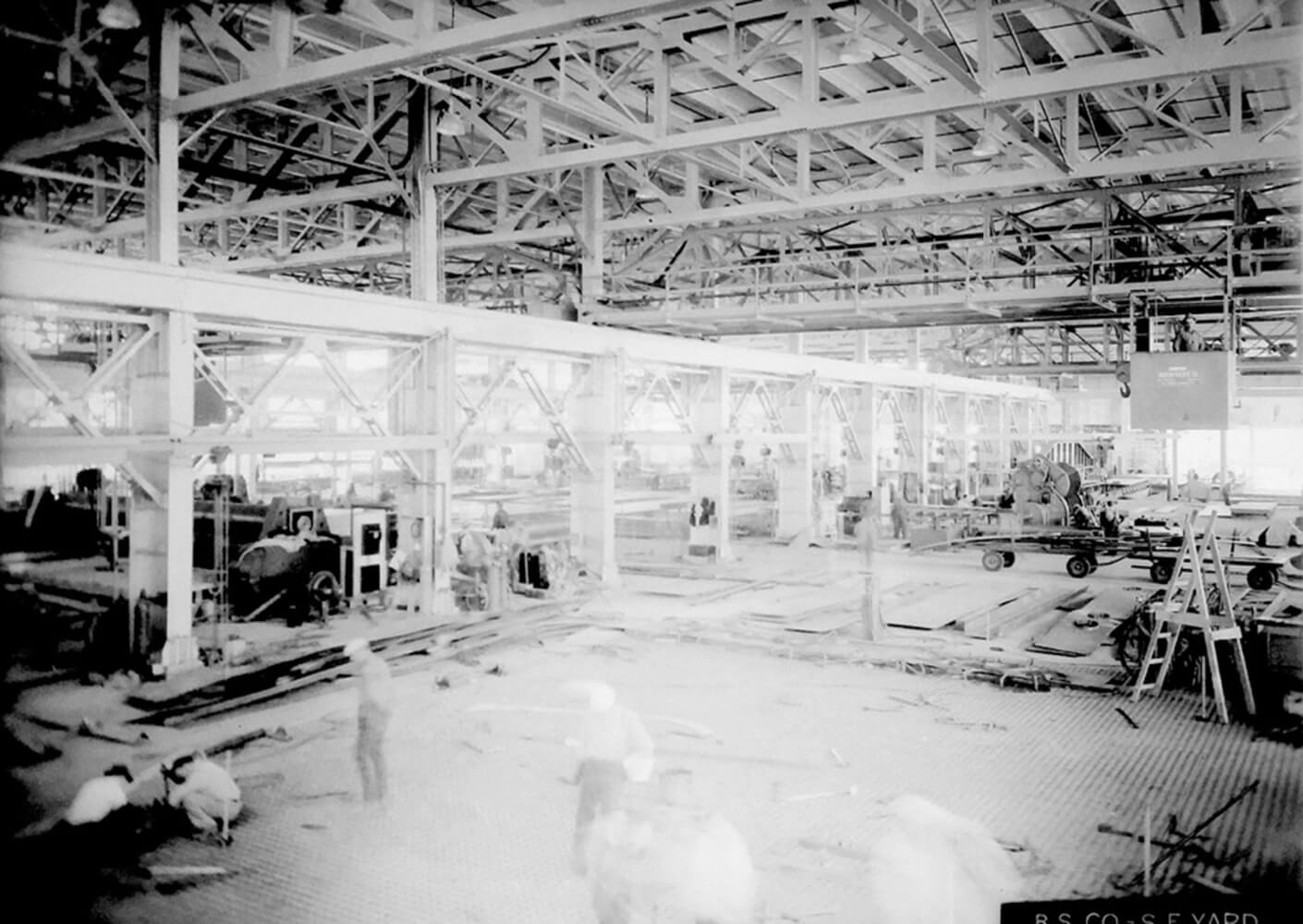 Originally built in 1941, Building 12 is part of a complex of buildings on Pier 70 that, during WWII, was one of the most productive shipyards in the country. Though still home to a few dry docks, most of the Pier 70 buildings had fallen into a state of disrepair during the ’80s and ’90s, and for public safety, access to Pier 70 and the waterfront was disallowed. As one of only a handful of historic structures on Pier 70 to be retained, our challenge in renovating Building 12 was to make visible that rich local history and to translate it for today’s new use.
