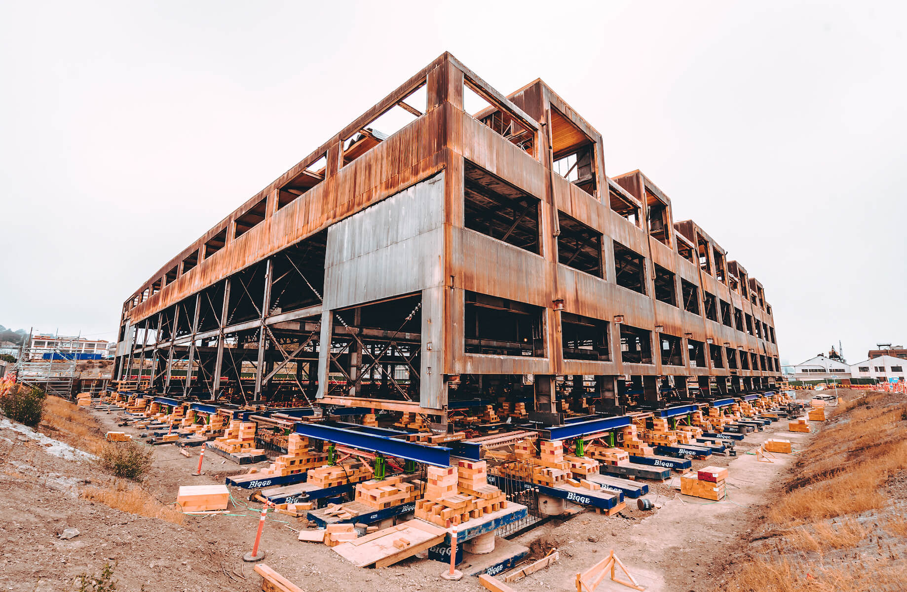 Historic Building 12 will be transformed into the beacon of the future Pier 70 site and the heart and soul of the new neighborhood. As part of the transformation, Building 12 will be lifted 10-feet to adapt to 100-year sea level rise and to ensure the future viability of this project. A new below-grade level, a second level and mezzanine will be added to the historic 2-story structure, as well as a new grand stair, 4 new elevators, 3 egress stairs, a full structural upgrade, and a new curtainwall system and operable window wall system.