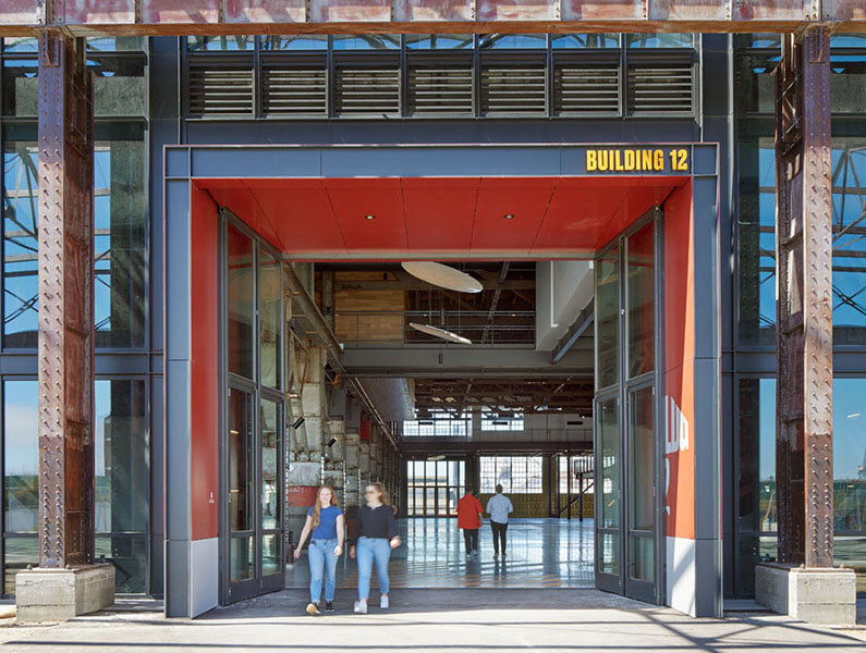 The main emphasis of the Building 12 experience will be a celebration of local making and manufacturing—a creative space for people from the surrounding neighborhood, community, and beyond to gather and engage with and support local makers and the act of manufacturing.